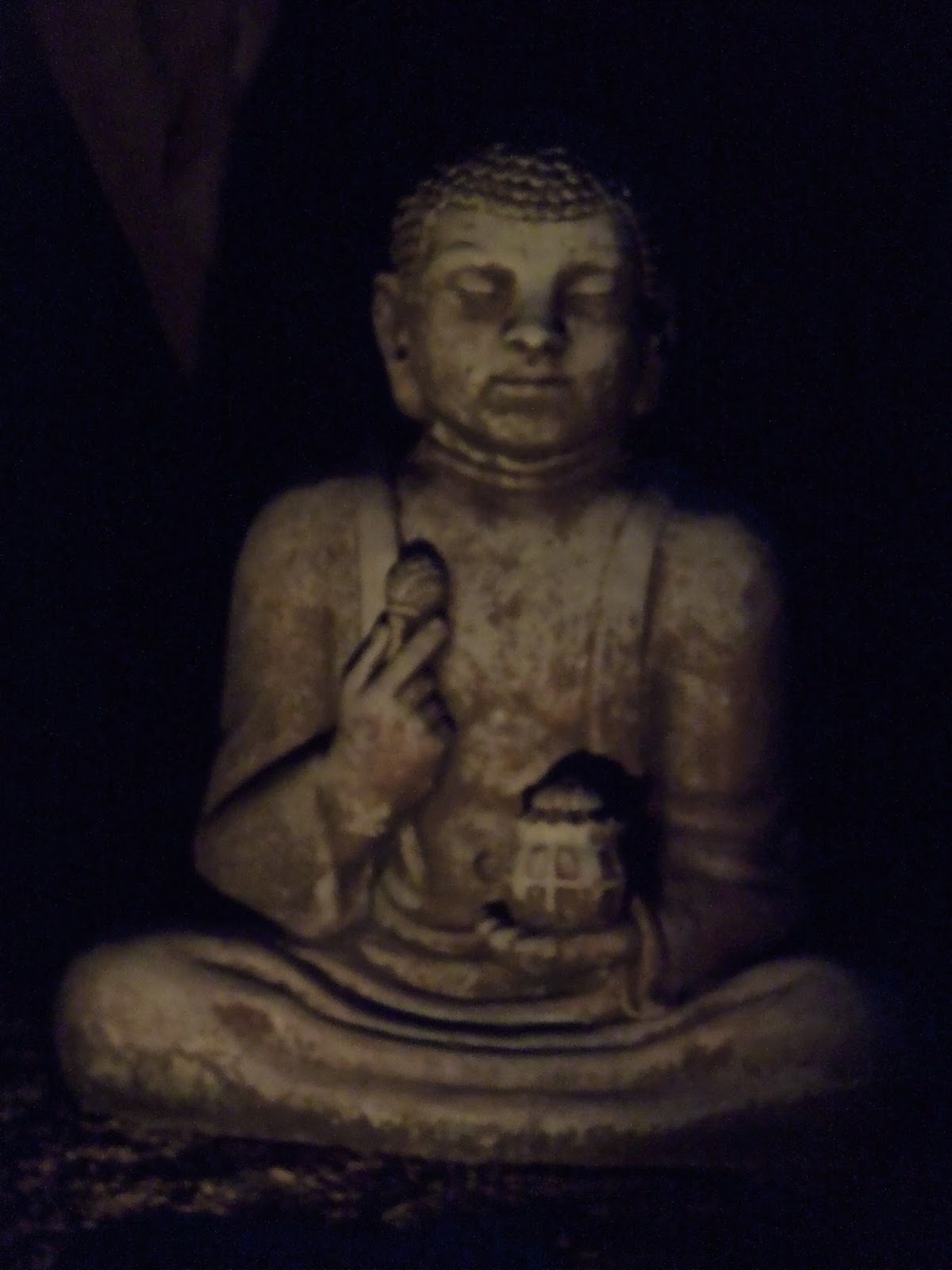 Brad has installed a light to shine on my wonderful buddha....this was taken last night so he shows up nicely and you can see how beautifully he has aged over the years.